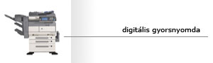 Digitális lézernyomtatónkon 80-250 gr-os papírok fekete-fehér és színes nyomtatására, ill. fénymásolására van mód SR A3-as méretig. Lehetőség van az elkészült nyomtatások laminálására, tűzésére, spirálozására (fém és műanyag), szükség esetén könyvkötésére. Minőségi gépparkunk garantálja az egyenletes minőségű, és színhelyes nyomtatást az elsőtől az utolsó példányig...